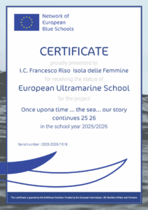 Nel 2024-25 viene raggiunto un nuovo traguardo, con la certificazione di “European Ultramarine Blue School”, che testimonia ancora una volta la validità del progetto e l'impegno dell'IC Riso nella sensibilizzare al rispetto e alla tutela dell’ambiente marino.
